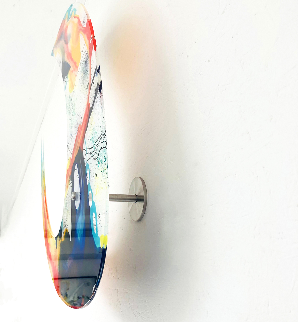 In many cases (where available) this is recycled acrylic glass, so I am giving it a new and colourful second life. The paint is on the back, making each of these abstract paintings a modern work of art with great depth.